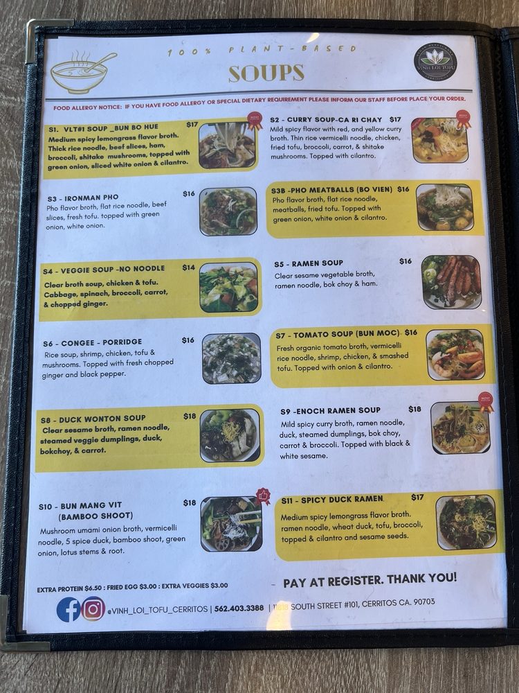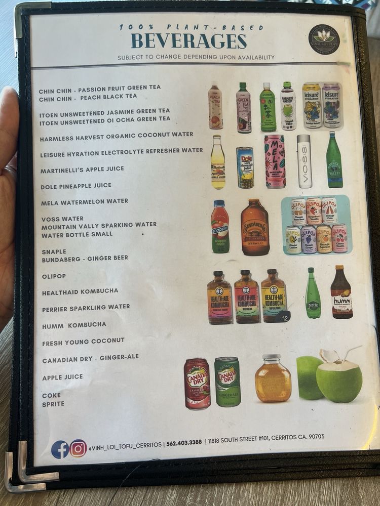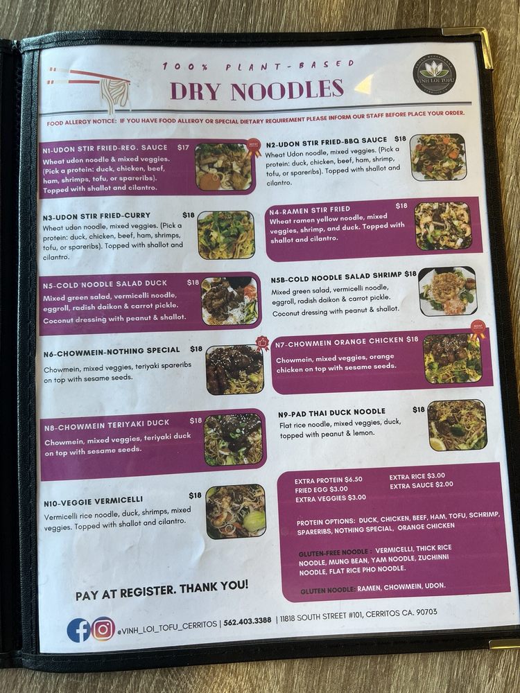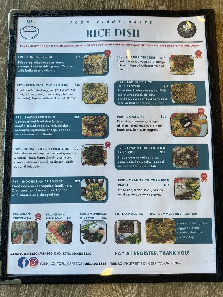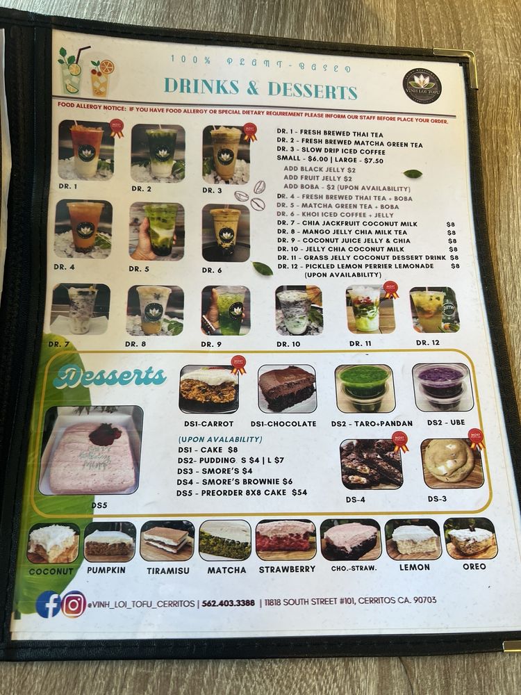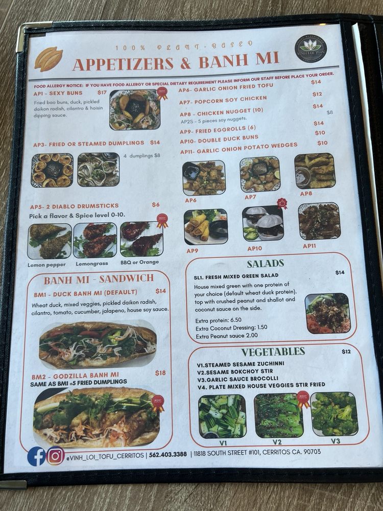 Vinh Loi Tofu - 100% Vegan Food - Cerritos Menu
